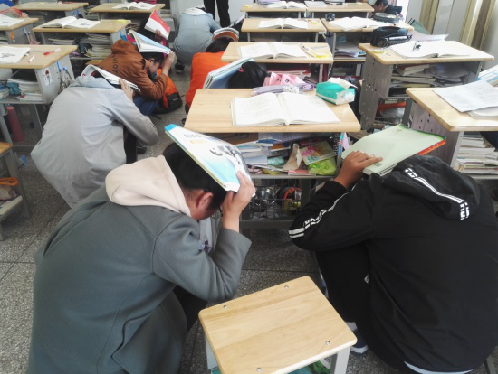 随着总指挥一声令下,地震警报声拉响,学生按照老师的训练要求,迅速从身边找出书本护在头顶,然后倚靠桌椅下蹲,开展自我保护模式。30秒之后,疏散警报声拉响,同学们猫着腰,捂住口鼻,在老师的指挥引导下井然有序地下楼梯,快速撤离教室,向学校操场的安全地带转移。随后,各班清点人数,并马上向总指挥汇报情况。最后,疏散演习总指挥张德华总结和点评了此次演练。