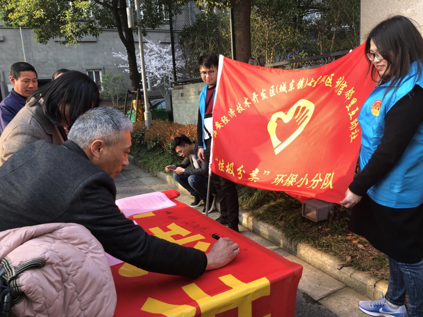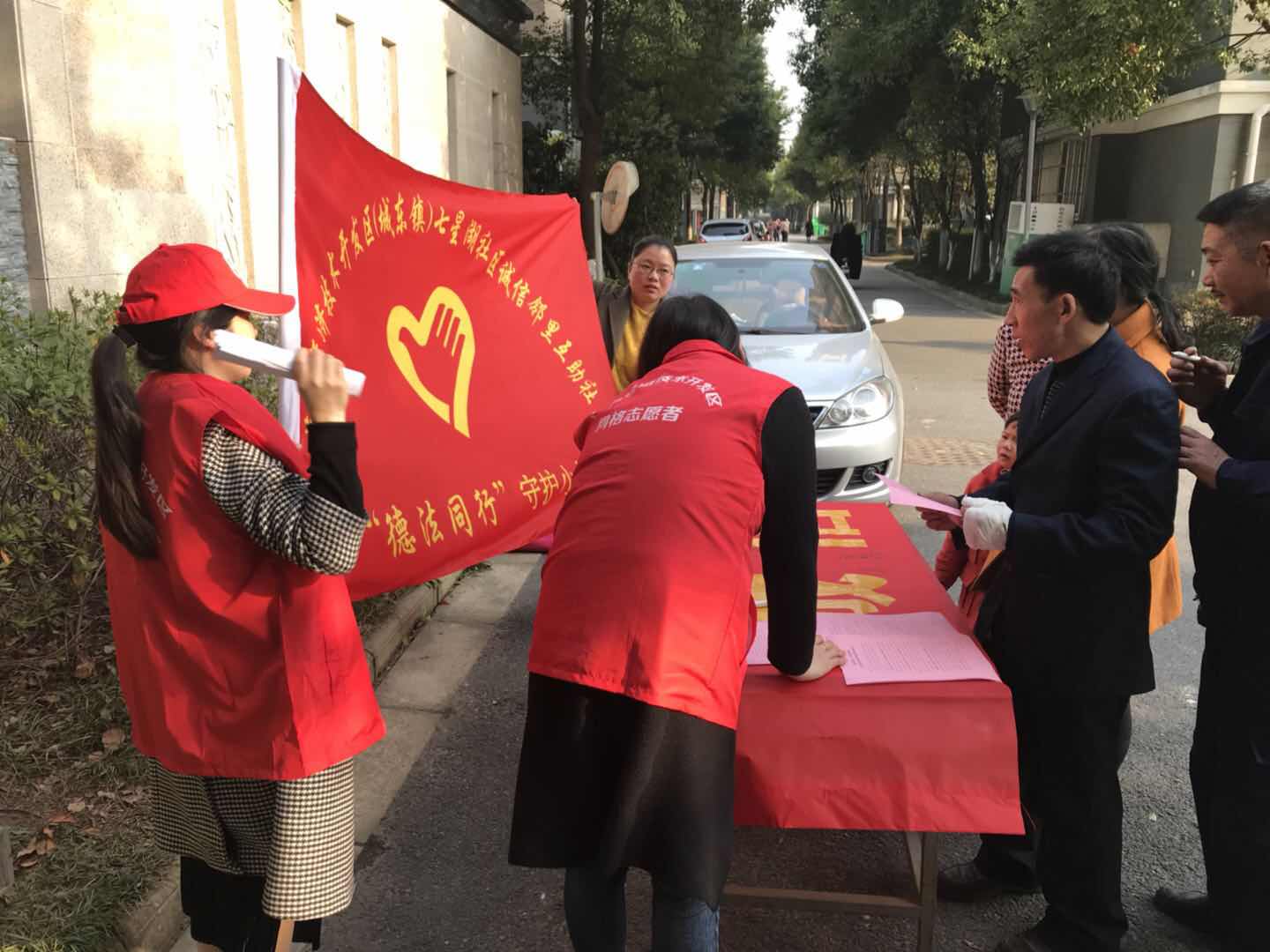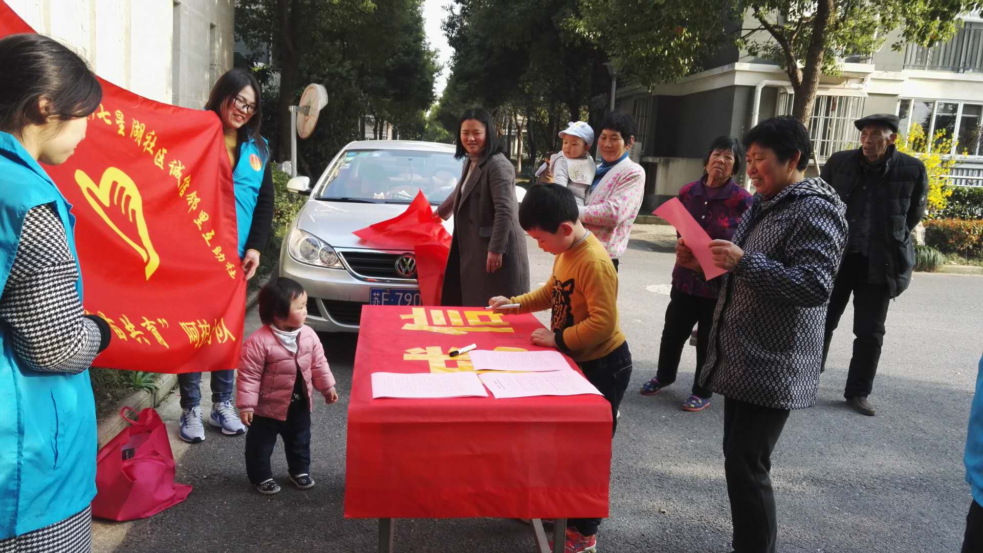 “三个一”,即发放一封公开信、签订一份承诺书、开展一次集中签名活动。七星湖社区支部书记杨立萍在团员活动日号召团员青年发挥先锋模范的带头作用,率先在承诺书、主题横幅上签名。接着,七星湖社区诚信邻里互助社各分队在居民小区发放公开倡议书,呼吁小区居民互知、互敬、互帮、互信,构筑和谐的邻里亲情,营造平安和谐的生活环境,积极参与到邻里诚信建设活动中来。很快,签名横幅前便围满了居民,大家纷纷签上自己的名字,也签下自己的一份承诺。七星国际城的物业经理孙霞在细读了倡议书内容后,表达了她对本次活动的认可:“远亲不如近邻,希望通过此次活动,居民之间更加互敬互爱、互联互通、互谅互帮,拥有更多的幸福感、获得感、安全感!我会在小区电子屏上打上《海安经济技术开发区公民诚信守则》,全力支持并投身到邻里诚信建设活动中来!”