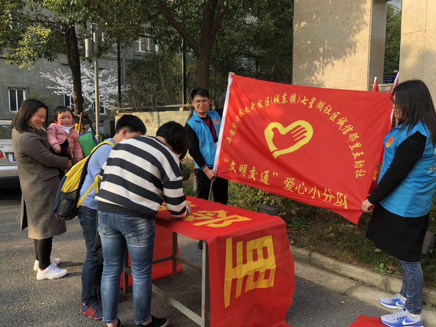 为积极响应上级学习贯彻党的十九大精神、建设“诚信邻里 你我共筑”活动的号召,2018年以来,七星湖社区团支部围绕一阶段“诚信邻里我参与”的活动计划,在社区全辖推广宣传“三个一”,提升居民参与度。